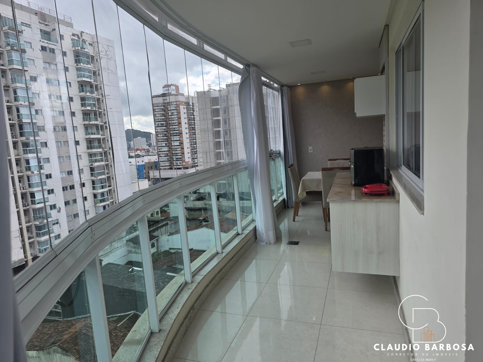 Varanda ampla com fechamento de vidro: Aproveite todos os momentos, independentemente da estação.