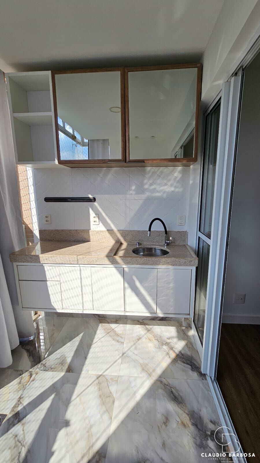 Varanda ampla com fechamento em vidro: Aproveite todos os momentos, independentemente da estação.